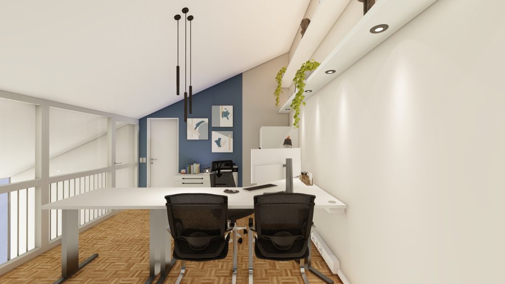 Dieses Büro wurde als inspirierender Arbeitsplatz entworfen – modern, effizient und stilvoll. Die Kombination aus Licht, Farbe und Textur sorgt für ein professionelles, aber dennoch einladendes Ambiente. Das Ergebnis ist ein Raum, der Produktivität steigert, ohne dabei auf Komfort zu verzichten.