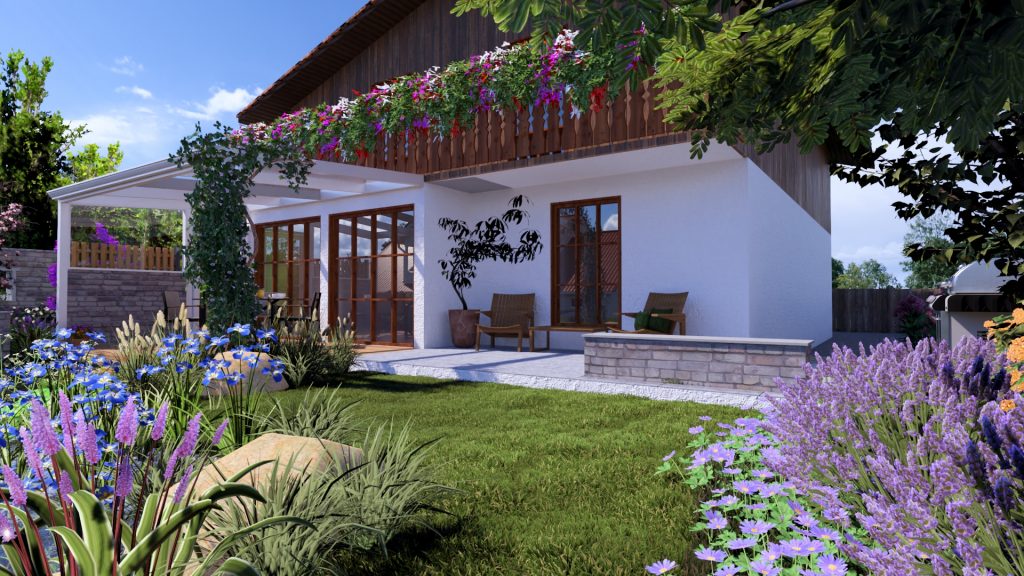 Dieses 22 m² große Gartendesign in Kolbermor verwandelt den Außenbereich in eine blühende Oase der Ruhe und Ästhetik. Die Planung verbindet ein natürliches Design mit einem hohen Maß an Funktionalität:
